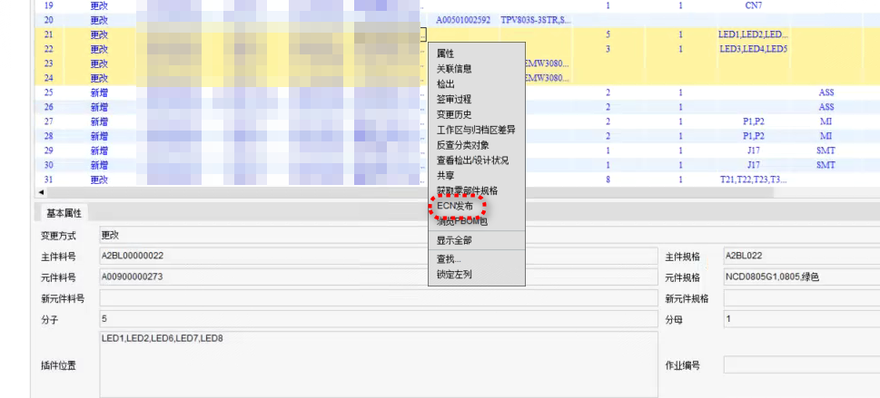 ECN Management:For BOM changes involving electronic components that do not affect drawings, modifications can be made directly through an Engineering Change Notice (ECN). If an ECN removes or deletes a child component, the corresponding substitution relationships are automatically invalidated in sync.