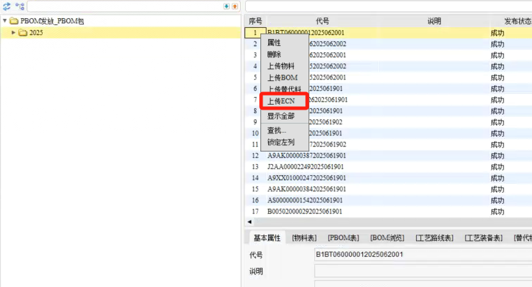 Substitution Relationship Release:A dedicated "Release Substitution Relationship" button has been added specifically for substitution and replacement relationships. Users can select multiple relationships for batch release, and substitute material information is uploaded separately to ERP.