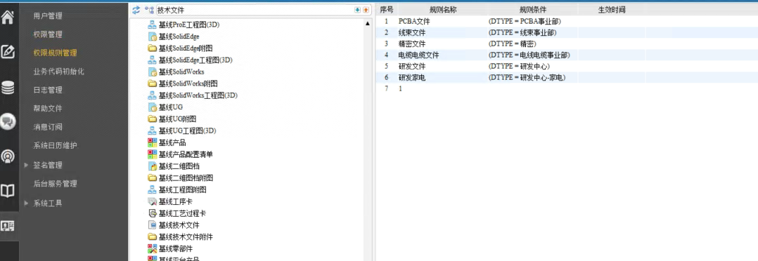 Technical Document Management:Technical documents are categorized by type, and major attribute fields are mandatory. Based on document classification and specific file attributes, the system controls user permissions—including rights to create, download, and view documents.