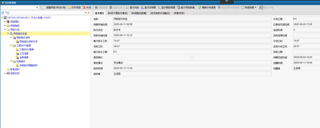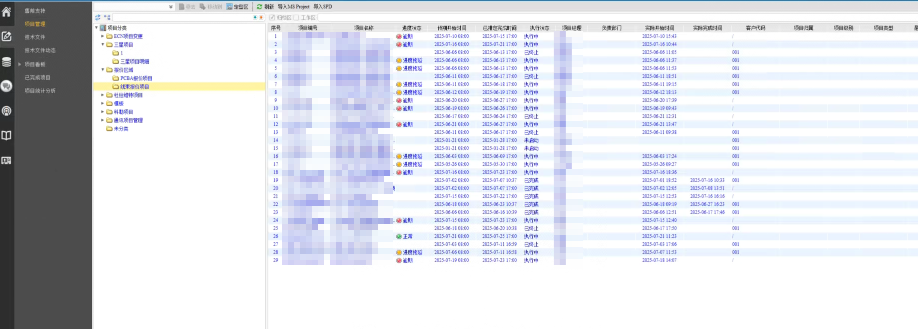 Schedule Management:By utilizing project-based automatic scheduling, the system ensures that subsequent tasks cannot be initiated until their prerequisite tasks are completed. Product batches are managed in the form of projects, embedding standardized processes into the system. This enhances the standardization of project management and enables comprehensive monitoring of contract timelines.