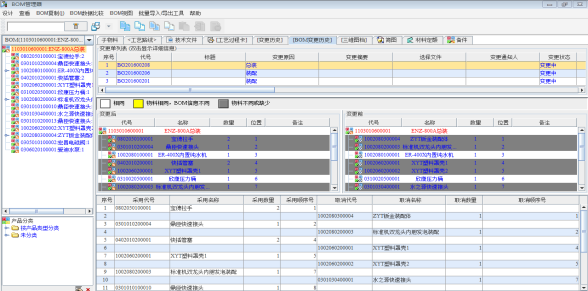 通过查看变更历史,可以对历次的变更历史进行追溯,而且还可以看到变更前后信息的对比差异,如BOM的前后差异。