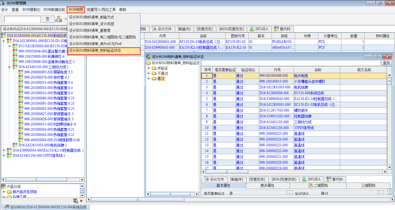 2、 增加零件确认管理模块,将外购零部件的确认状态实时展现在BOM结构中,避免未确认的进入生产环节,从而保证产品质量。
