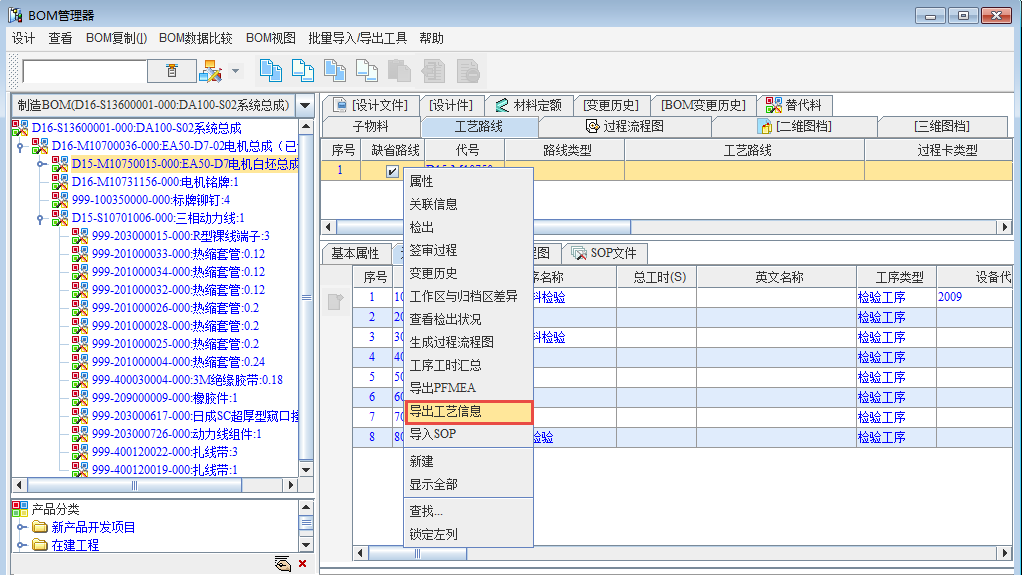 上海大郡工艺是集装配工艺于一体工艺模式,同时还有质量管理(PFMEA、控制计划);通过SIPM/PLM系统的工艺设计平台,实现了工艺文件的数据关联(过程流程图、SOP、PFMEA、控制计划),提高了工艺数据的标准化、规范化。