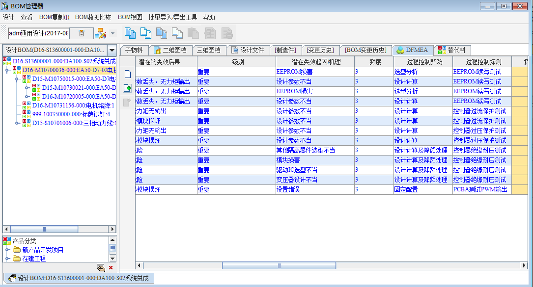 SIPM/PLM提供了全面的特殊特性及FMEA结构化管理解决方案,实现企业产品特殊特性、过程特殊特性、DFMEA及PFMEA的结构化管理,为企业的知识积累提供了机制和系统上的载体,确保产品研发知识的实时共享。
