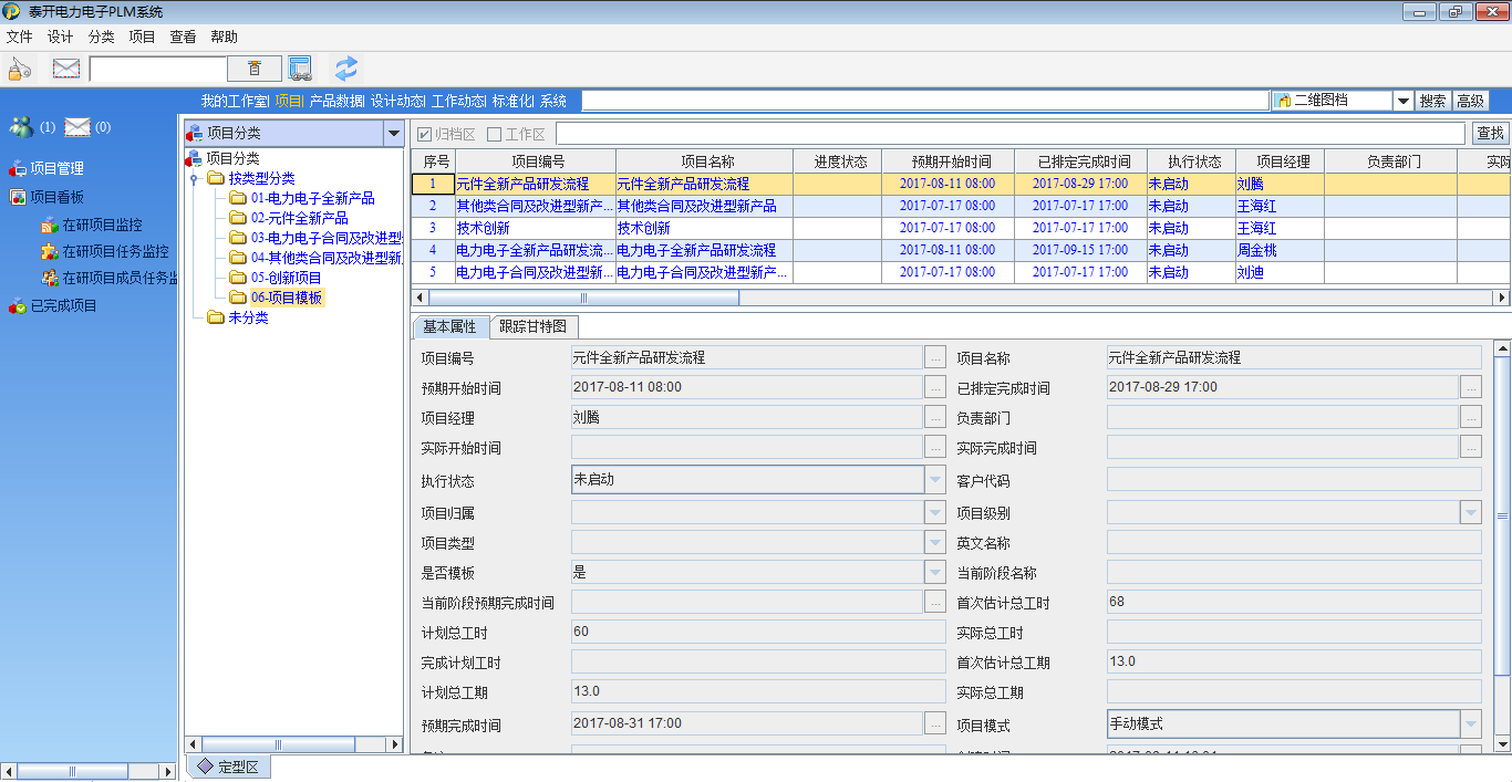 在实施过程中,根据主要客户所对管理体系的要求并结合泰开电力电子本身对产品开发的要求,对产品的开发过程进行了全面梳理,最终形成了元件全新产品研发流程、电力电子合同及改进型新产品研发流程、技术创新、其他类合同及改进型新产品开发过程共计5个不同类型的开发流程,并以项目模板的形式固化到了PLM系统中;