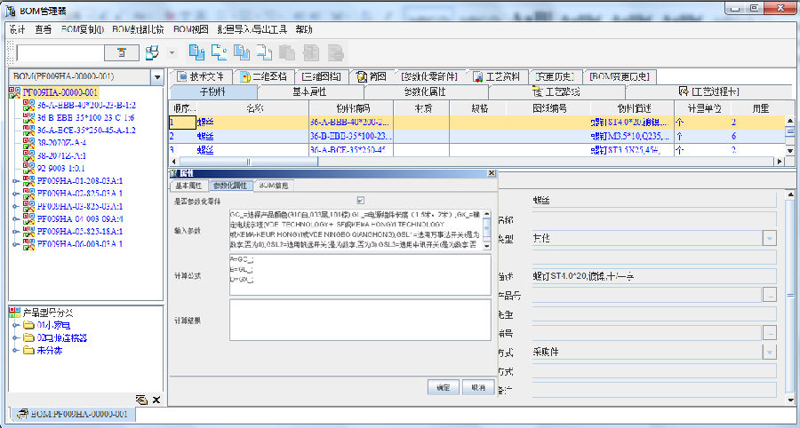 根据标准产品参数的输入参数,系统自动生成订单产品订单参数输入界面,设计人员只要简单输入订单包含的产品技术参数,就可以自动形成订单产品的BOM结构