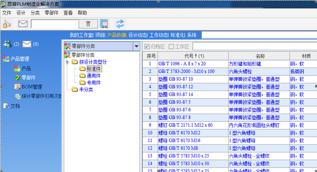 4、为提高产品设计标准化,聊城中通项目组对标准件、通用件、专用件统一整理,并在PLM系统中进行了清晰的分类,方便工程师参考和借用。