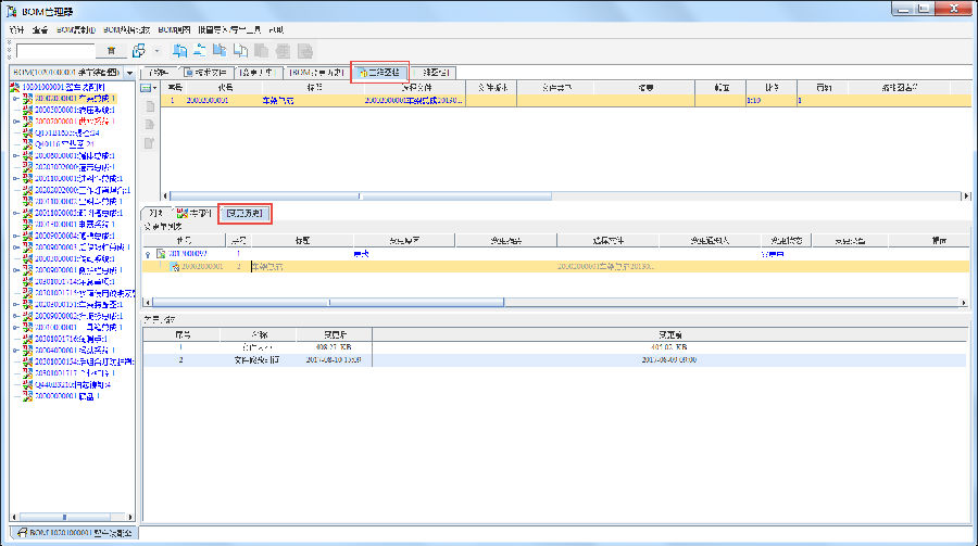 2、通过变更历史的查看,可以对历次的变更历史进行追溯,而且还可以看到变更前后信息的对比差异,如BOM的前后差异。