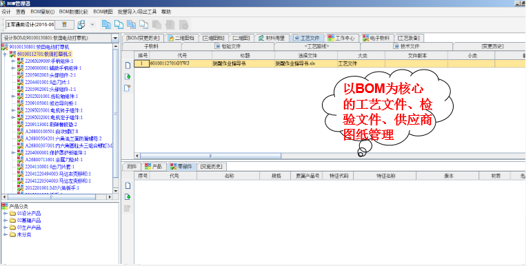 2、SIPM/PLM为大叶园林设备产品提供以BOM为核心组织管理,各类技术文件、图纸等信息集中关联展现,做到所见即所得: