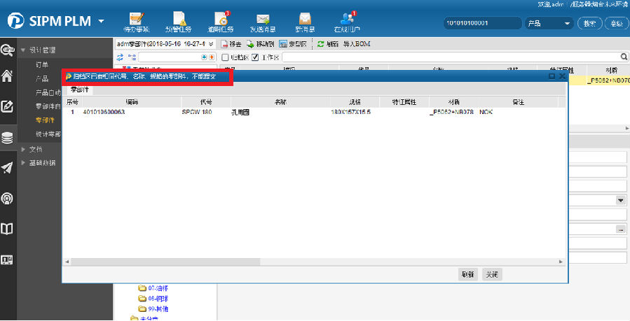 2、验证功能,全方位数据保障,对物料的代号、名称、规格进行验证存在相同时,禁止物料新增,防止一物多码的情况发生