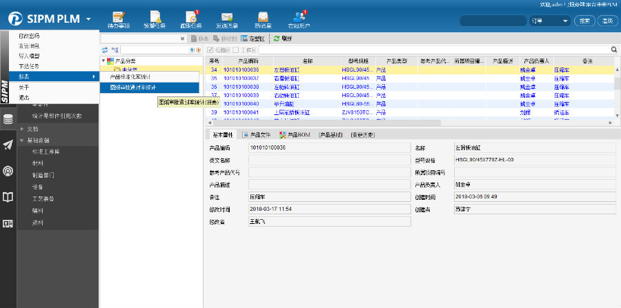 1、数据统计汇总,为设计标准化率的提高提供指导参考, SIPM/PLM针对烟台未来开发了产品标准化率统计、图纸审批通过率统计等报表的输出,实现了公司领导对产品设计标准化率的有效了解,对产品设计标准化率的提高提供参考。同时也避免了人为统计出错现象。图纸审批通过率的统计为评价设计人员的绩效能力提供数据依据。
