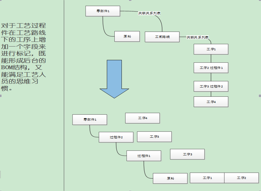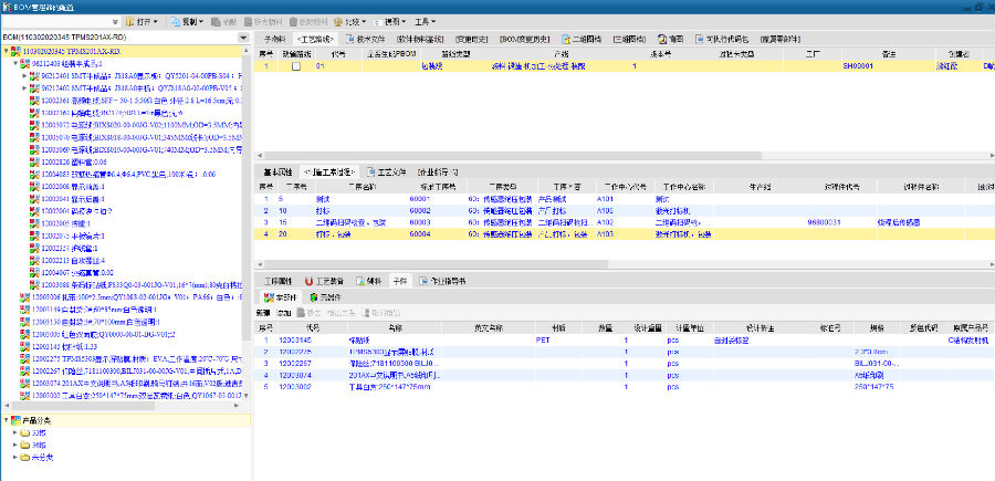 根据上海保隆公司关于工艺过程件、工艺工程师对设计BOM需要根据生产线情况进行调整BOM层级结构的管理方案,SIPM/PLM采用结构工程师、硬件工程师、软件工程师维护产品设计BOM,工艺工程师维护工艺路线过程及过程中应用的辅料,对工艺过程中可能产生的过程件进行标识,通过工艺路线中加入的过程件、子件生成PBOM传输至ERP的管理方案。