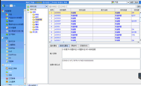 2、建立宇翔原材料库,工程师可在工艺设计时,直接选用工艺原材料,并自动计算材料定额。