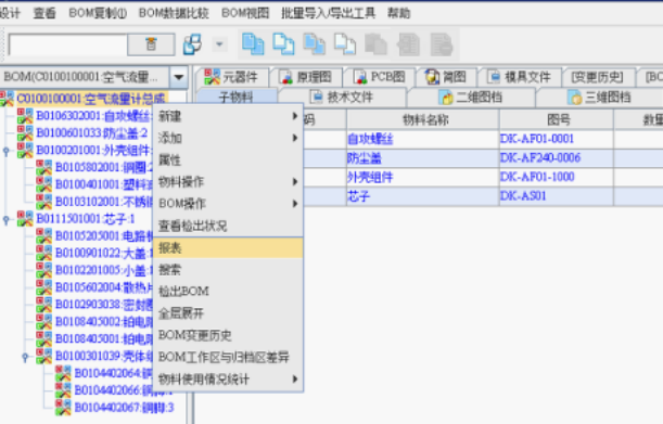 可一键式地将产品BOM清单进行报表导出,确保产品BOM结构信息准确;
