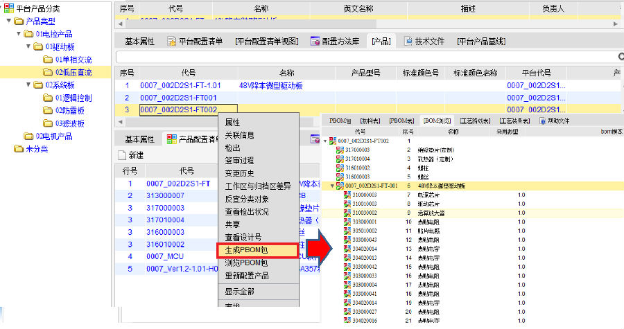 配置出的产品生成PBOM,为制造使用。减少人工作业过程中的数据遗失与失误,保证设计数据有效利用