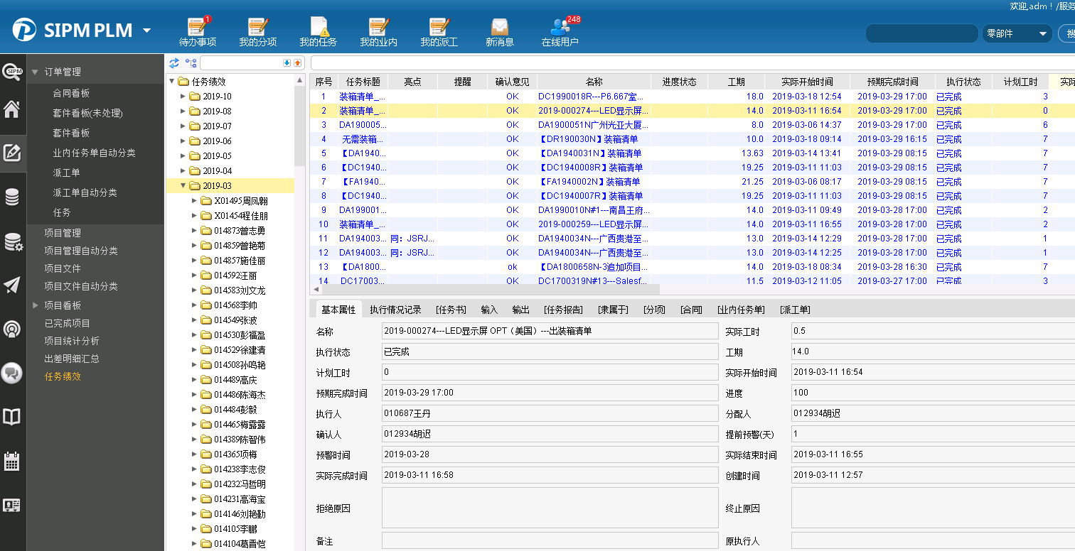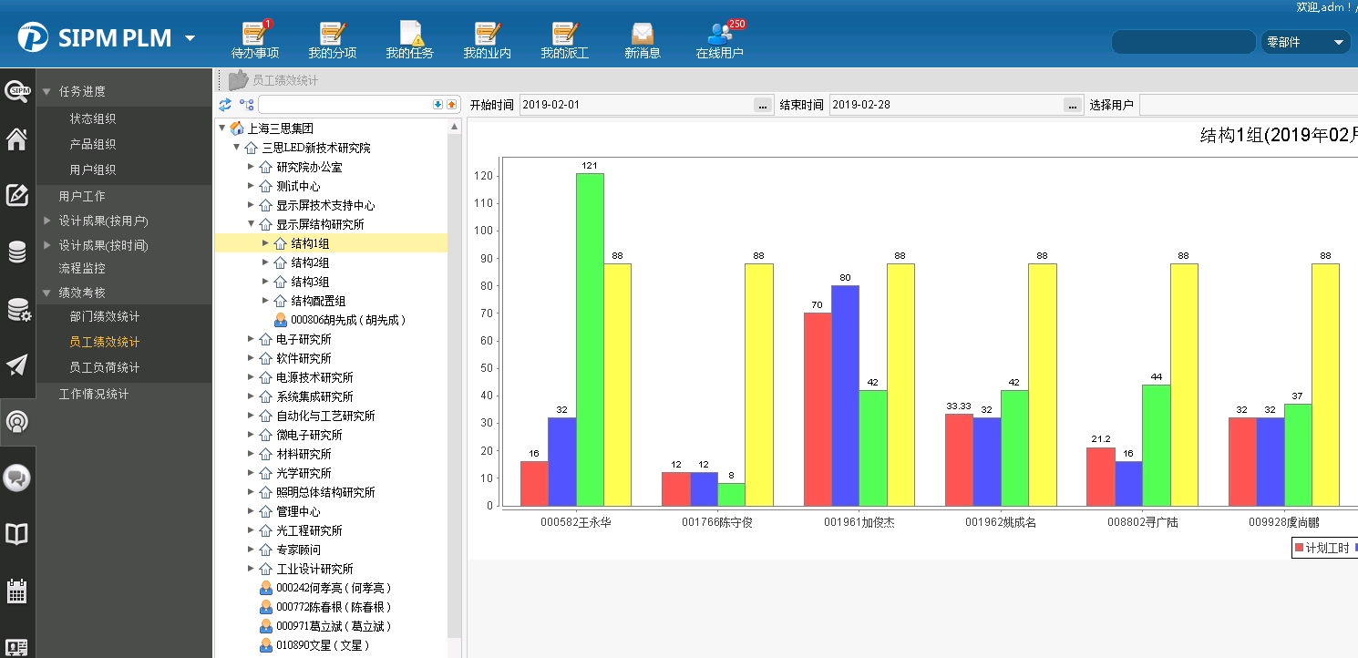 从三思PLM系统正式上线后,三思研究院所有的研发任务、订单设计任务、日常任务都在PLM系统中线上进行下达、交付、确认。根据实际完成的状态,PLM系统任务管理模块自动根据时间、人员、完成状态分类,三思绩效考核人员完全依据这些数据为基础,进行每月的绩效考核工作。