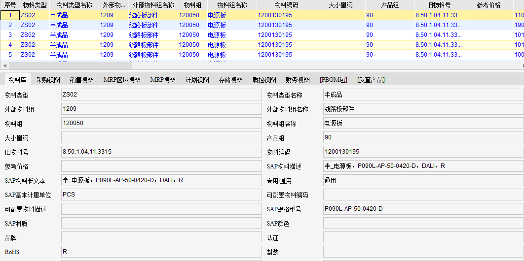 三思PLM系统实现接管所有SAP生产管理系统所需要的属性,即用户在PLM系统同步维护SAP所需的物料主视图、采购视图、MRP视图、MRP区域视图、质量视图、计划视图、存储视图等相关数据。