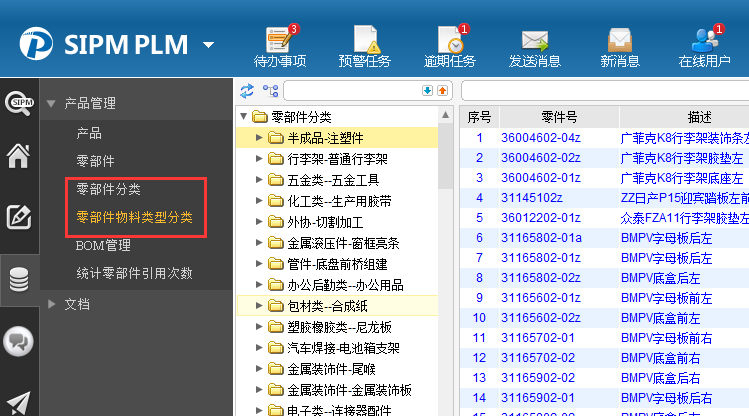 通过零部件属性字段将零部件从两个不同的维度进行分类管理,极大的方便了工程师对零部件的查找和统计,提高研发效率降低研发成本;