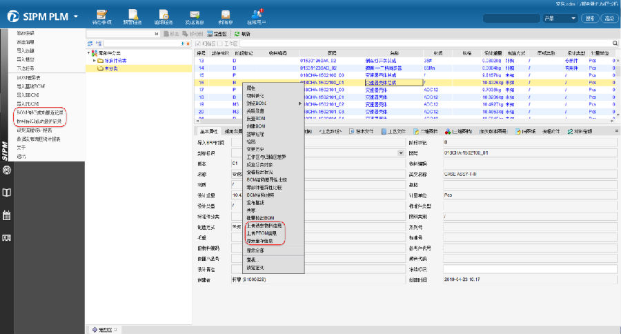 以产品为源头建立产品BOM管理;以BOM为纽带构建系统化的图文档管理模式,实现产品数据的标准化管理及共享,以下为SIPM/PLM功能演示: