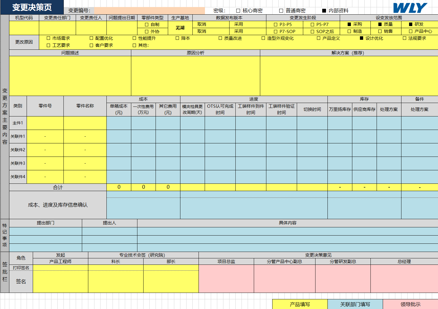 万里扬的工程变更异常复杂,关联岗位及部门众多,并且芜湖基地和金华基地的流程也各不相同,利用PLM系统的工作流管理模块,万里扬金华基地、芜湖基地实现了在PLM系统中线上管理工程变更的目标,实现跨部门线上会签、电子文件签名、相关变更附件统一管理,保证变更的完整性。