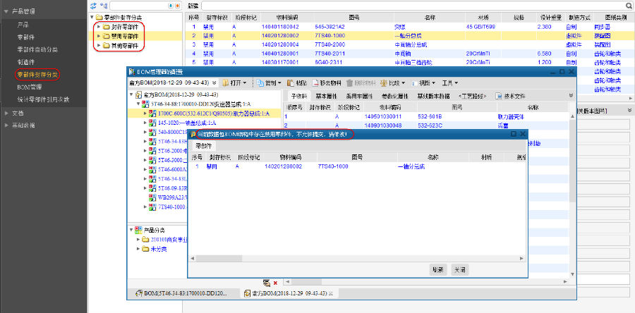 4)SIPM/PLM定制开发物料状态和发布状态管理,对已停用的零部件及发布状态不符合的零部件进行有效管控。