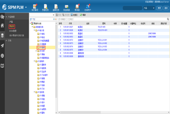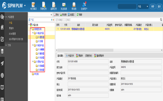 金海利用SIPM/PLM系统强大的数据管理功能,实现企业级的产品数据分类;以产品为源头建立产品级的文档管理和产品BOM管理;