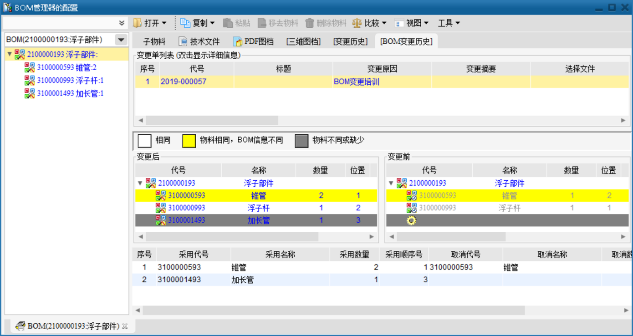 图8 BOM变更对比