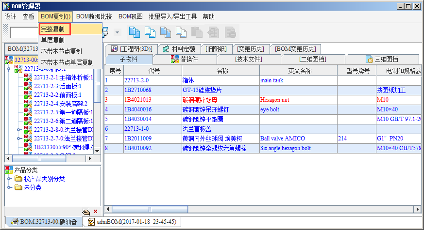 因产品结构特性,恒力泰产品不会输出完整的线体BOM表,而是分功能设备级别出BOM表,实现了分功能设备级别的模块化管理;