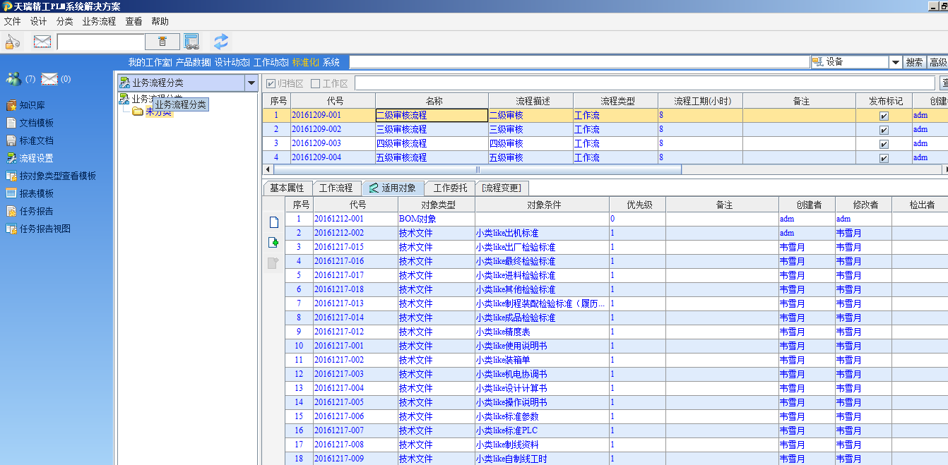 为提高产品设计标准化,恒力泰PLM项目组对标准件、通用件、通用模块进行总结、规范和整理。在PLM系统中对零部件进行清晰分类。