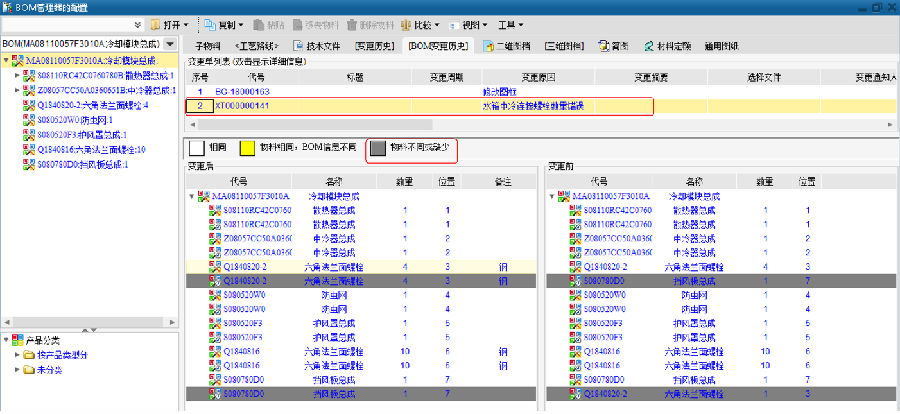1、实现变更前后的BOM结构差异比较,变更单与变更数据直接关联。提高变更的历史追溯管理。