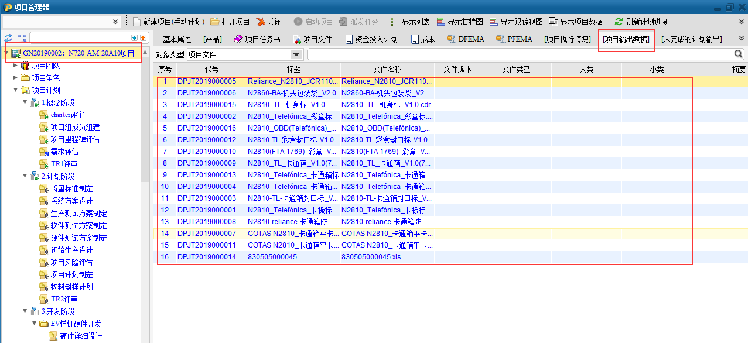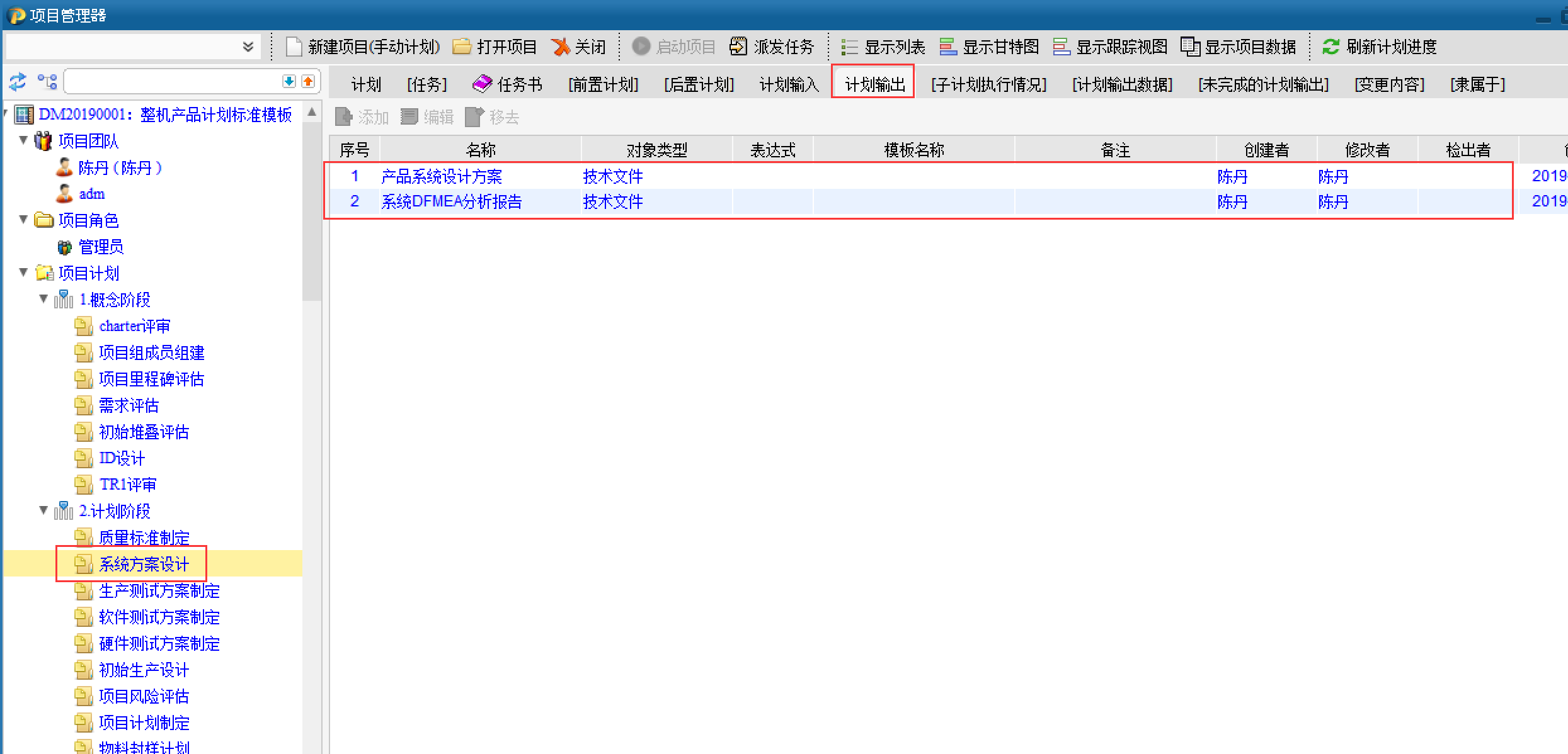利用SIPM/PLM系统强大的项目管理功能,将优化后研发流程通过系统进行固化,所有计划项的输出物在计划输出中进行固化,保证了产品开发按APQP要求进行控制,确保产品的质量。