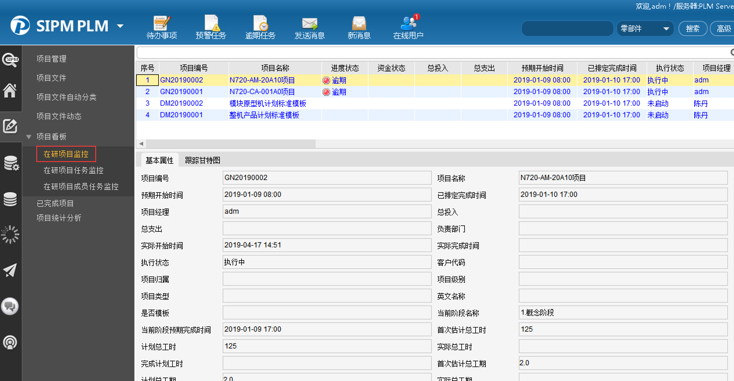 通过SIPM/PLM项目看板实现管理者实时监控产品的研发进度