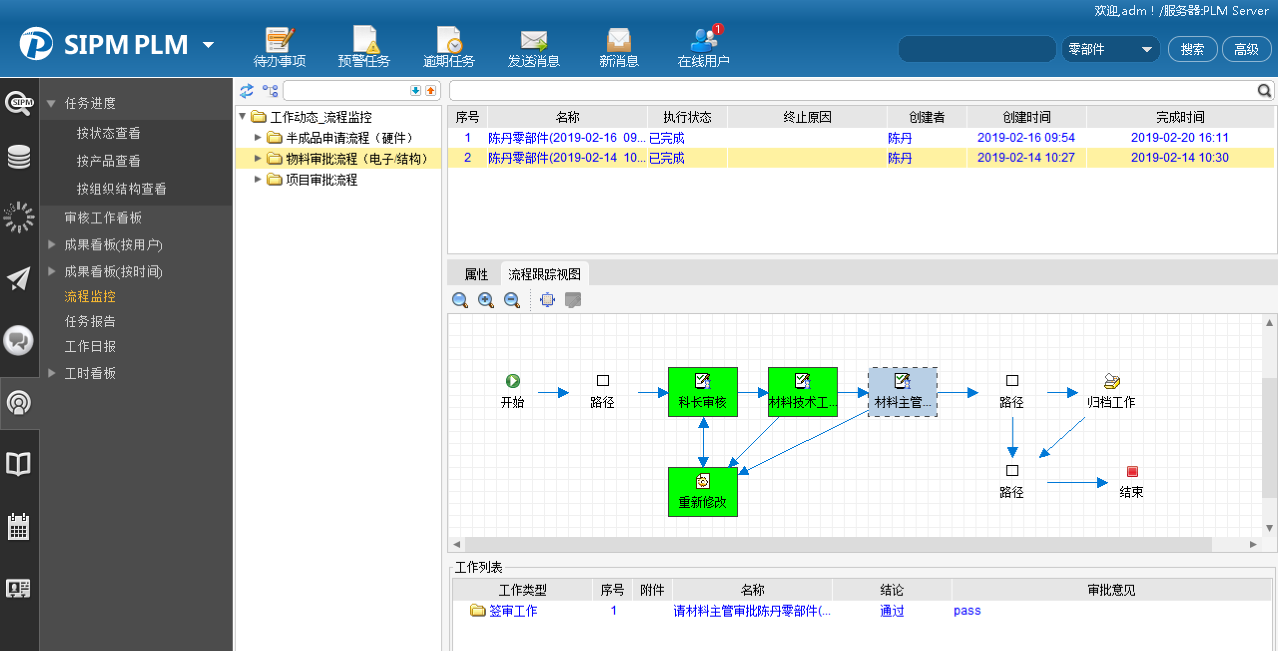 同时图形化的工作流可以实时并清晰的监控计划输出物签审流程的进度。