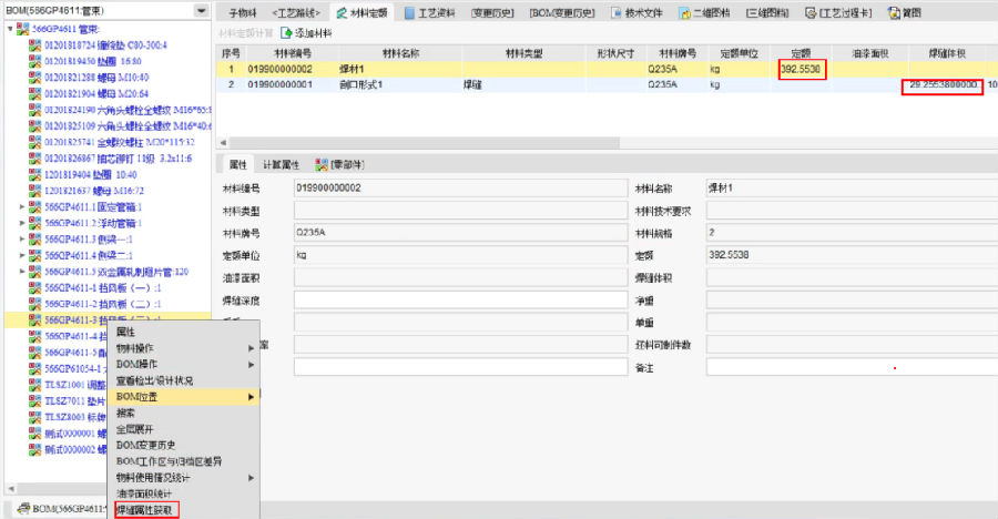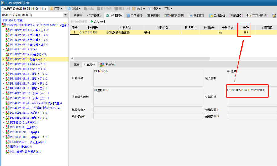 对于哈空调油漆定额及焊材定额计算一直是通过人工计算,工作效率底且不准确,通过CAPP系统可以实现BOM中油漆面积统计及根据维护的油漆定额公式自动计算油漆定额,且通过公式计算不同焊缝形式的焊材定额。定额人员只需维护计算公式极大减少了定额人员工作量。