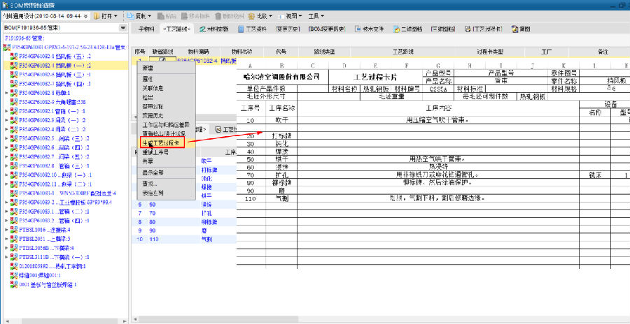 CAPP系统中的物料、BOM、工艺、定额数据、按照哈空调的数据需求传输到ERP系统中,实现CAPP与ERP高效集成,工艺工程师在接收到PDM传输的物料、BOM信息后,直接进行工艺设计传递至ERP进行指导生产,打通CAPP到ERP完整数据流。