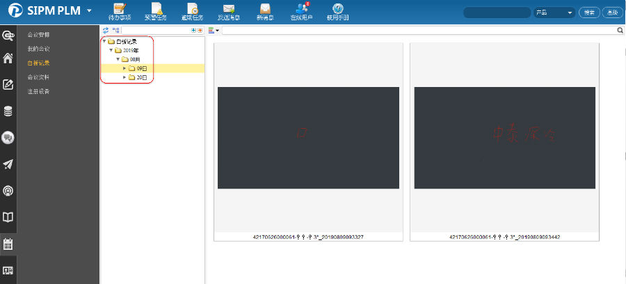 在会议过程中及时记录管理在移动设备(白板)上的“手写批注”、“白板记录”等会议内容;