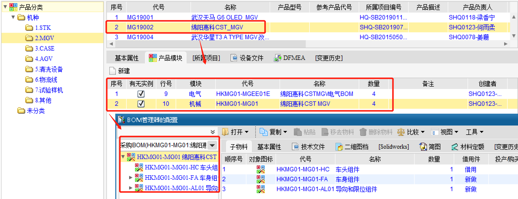 将每一订单产品结合PLM系统进行数据结构化整理,将每一产品部件,建构直观的产品树型结构,并依此放置对应的技术文件,舍弃过往共享文件低效的管理。