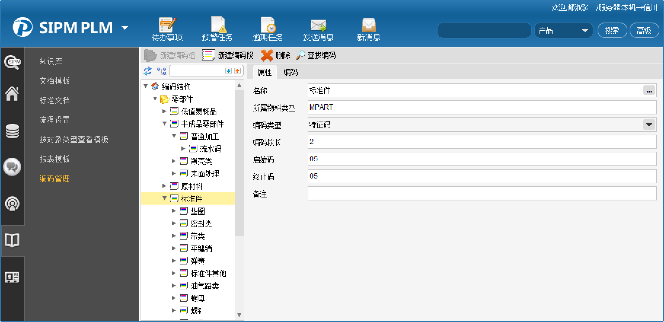 2) 利用SIPM/PLM系统编码管理模块,建立公司零件、文档编码体系,根据零件所填信息自动生成编码,从源头上杜绝了一码多物的可能性。