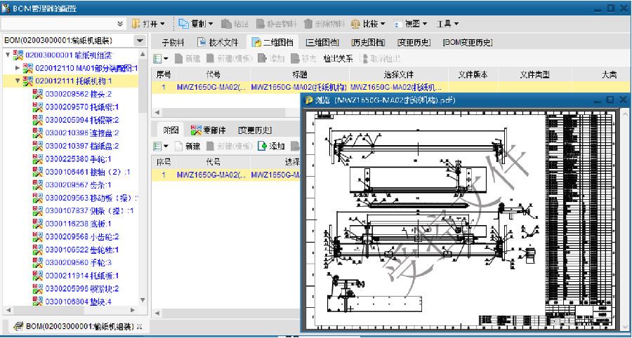 3) 以BOM为中心实现技术资料(含图纸)关联管理,打通技术数据和ERP系统的互通;