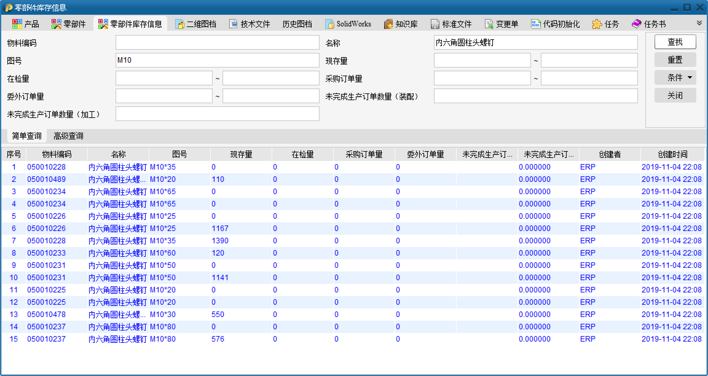 设计的同时,工程师在PLM系统直接查看该物料在ERP的库存量,为设计和变更提供参考。