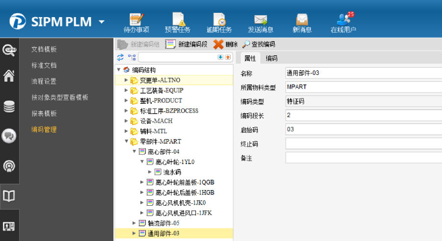 6. 利用SIPM/PLM系统编码管理模块,建立公司零部件、工艺基础数据编码体系,根据零件所填信息自动生成编码,从源头上杜绝了一码多物的可能性。