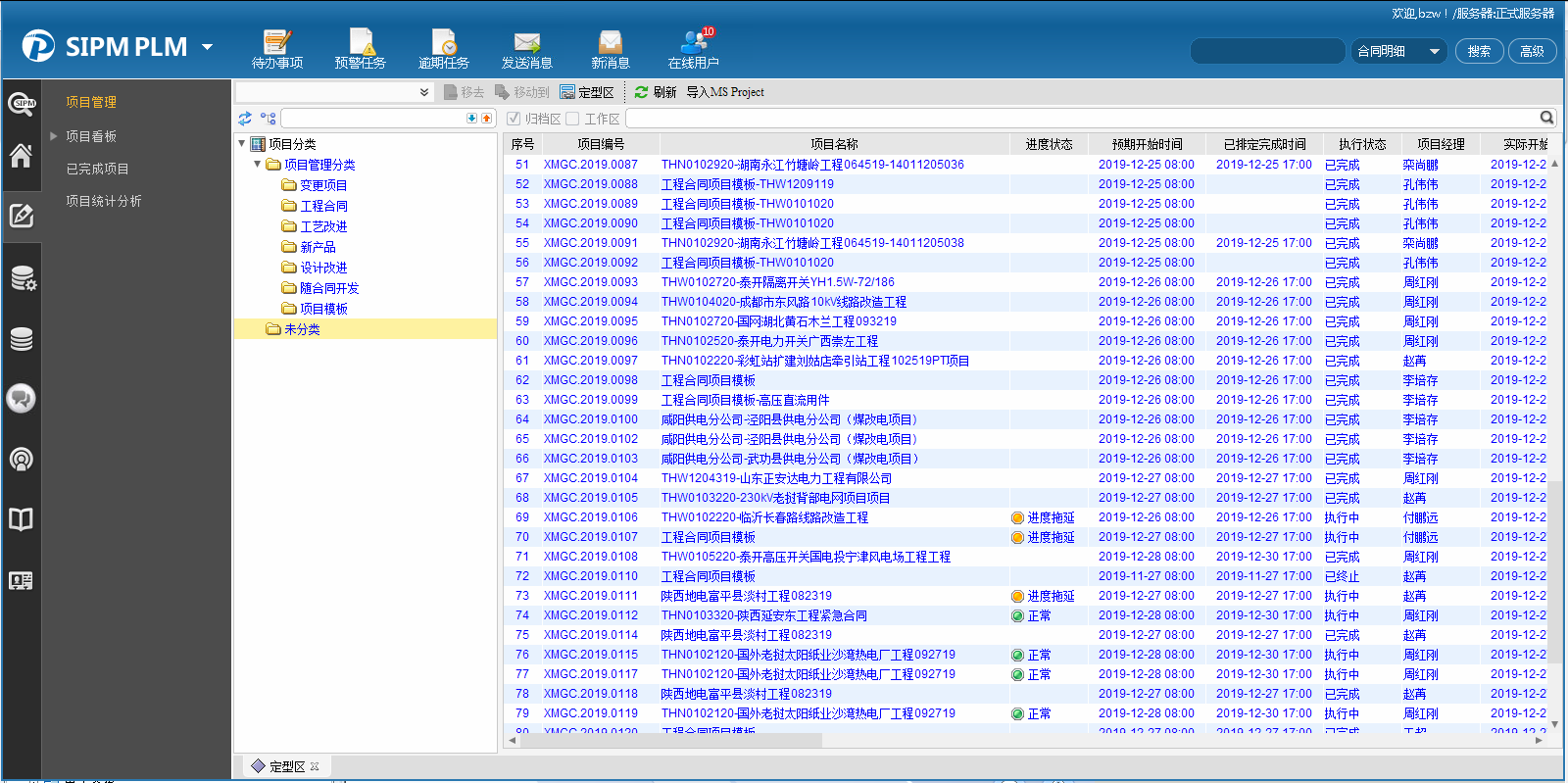 1) 建立项目模块支持统一的分类管理,按照APQP流程制作项目模板;