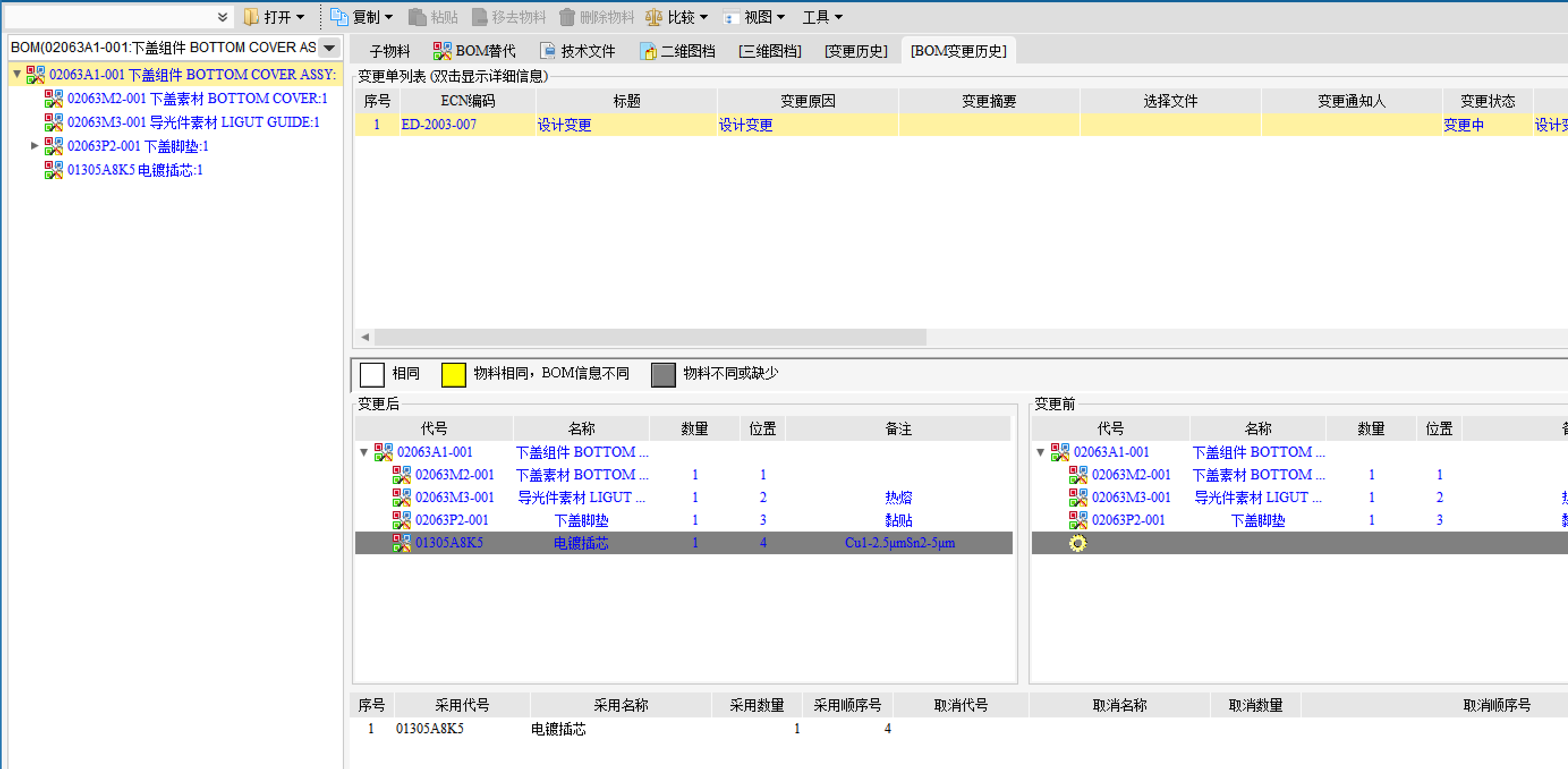 3) 以BOM为中心实现技术资料(含图纸)关联管理,打通技术数据和ERP系统的互通;