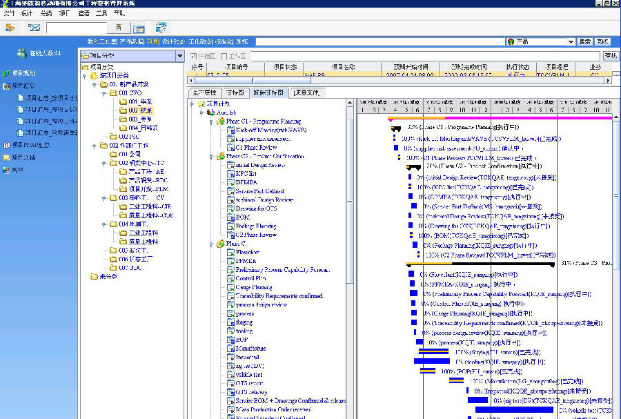 利用SIPM/PLM项目管理解决方案实现了产品从立项到批产的全过程管理,实现产品实现流程、人员工作和技术数据的有效集成,全面提升企业管理人员对研发过程的总体控制能力。通过将研发项目的分级分类,建立了项目APQP模板库,将TS16949质量体系固化到项目模板中,辅助以分级规划、集中控制和图形化项目规划、调整功能,实现快速、全面的柔性化项目规划和控制。
