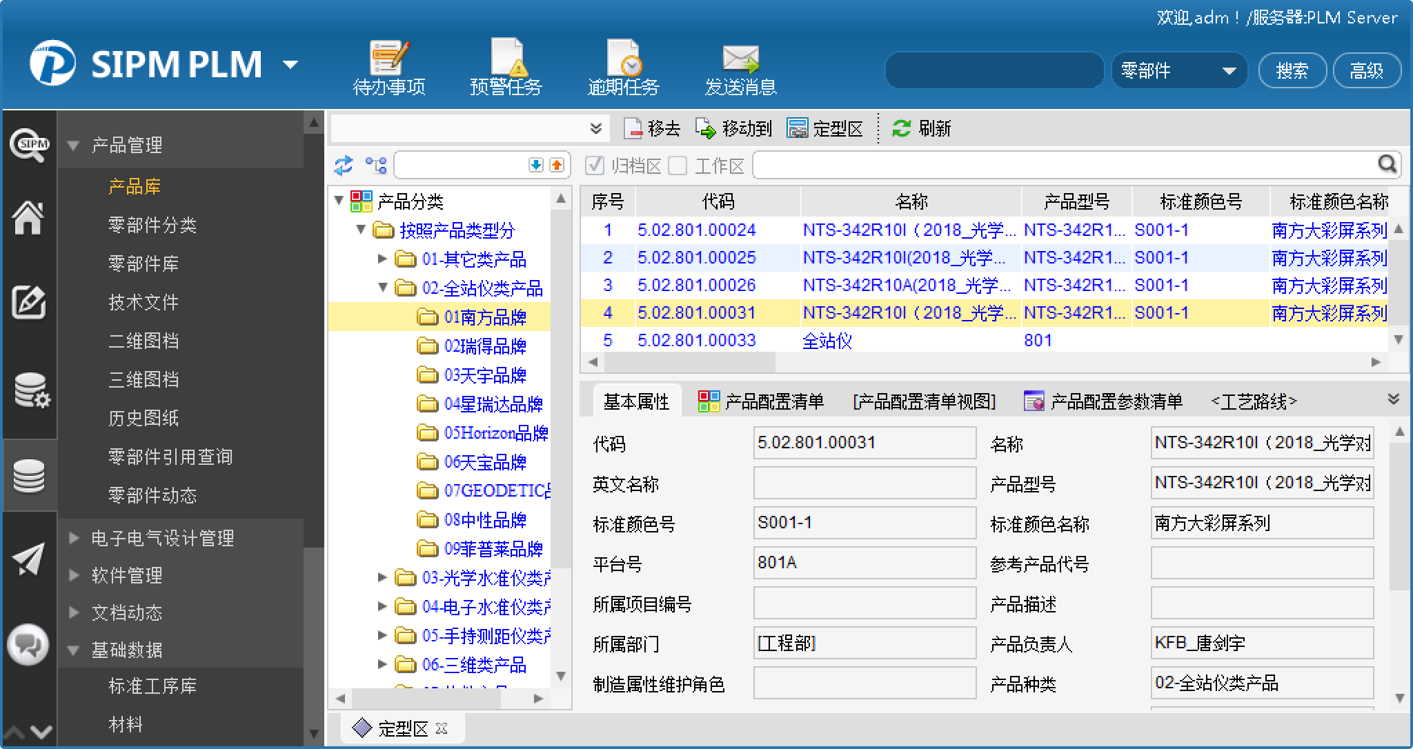 4) 通过采用设计软件与PLM系统集成,设计人员只需在统一制定的设计软件模板中完成设计,便可通过接口将设计的图纸上传到PLM系统。整套产品设计软件图纸进入SIPM/PLM中时可直接提取生成树状产品BOM,图纸修改后,对应零部件的信息自动同步更新,保证数据一致性,并且经过系统流程签审后,会生成签字版PDF图纸文件;