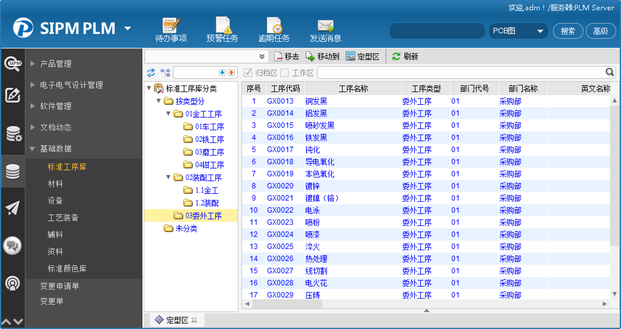 5) 通过维护工艺基础数据库,实现对标准工序、材料、设备、工艺装备、辅料的标准化管理,进而对加工、装配工艺路线提供设计支撑和约束,并借助于PLM系统实现对材料定额的自动运算;