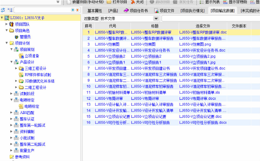 利用SIPM/PLM系统的项目管理功能及流程管理功能,将公司产品研发流程在PLM系统固化成:产品设计、样品试制、电喷标定、ABS匹配、整车认证、小批试制、批量生产七个阶段。