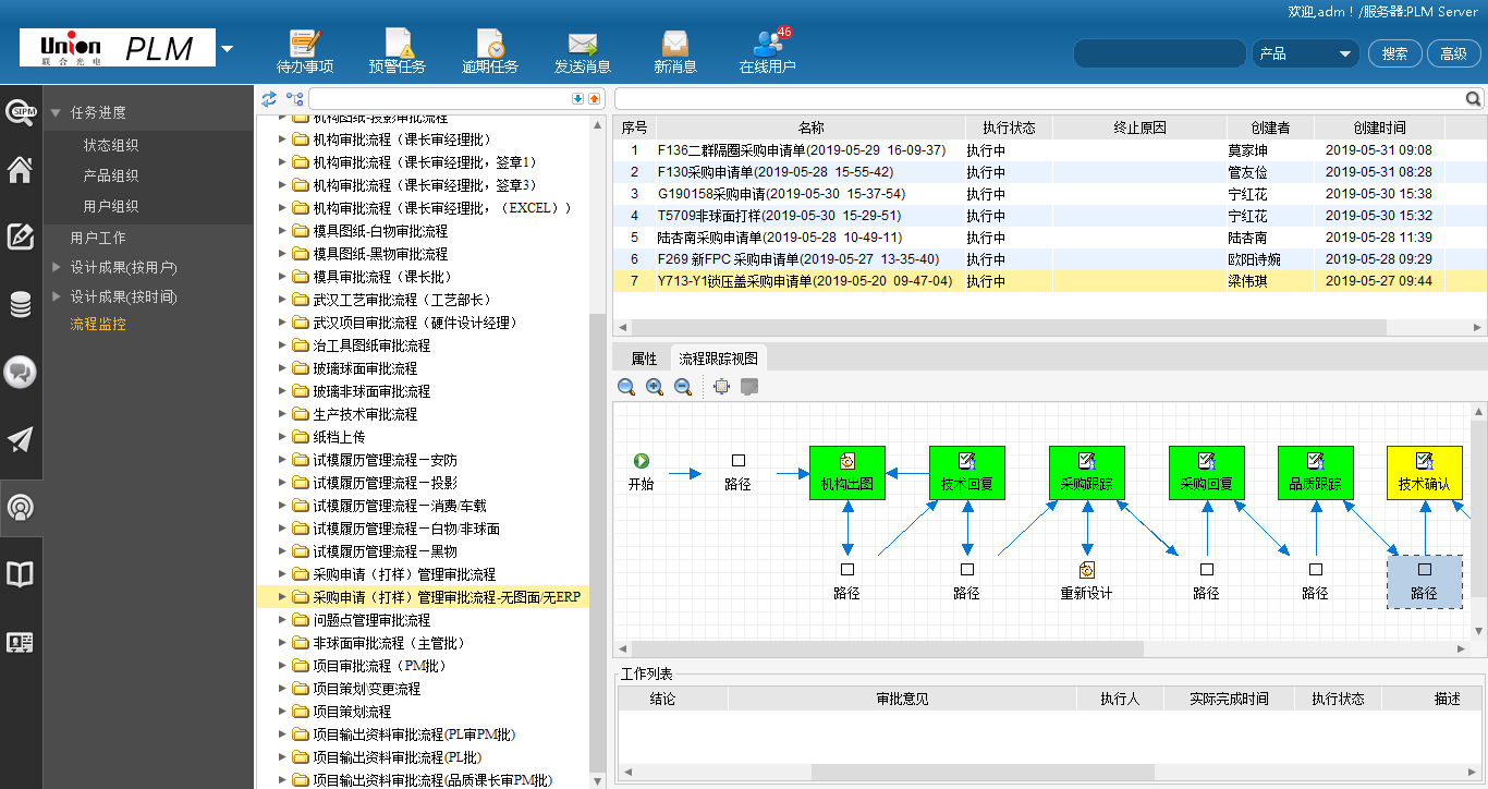 通过SIPM/PLM项目管理的实施,双方项目组对产品研发过程分析整合后在SIPM/PLM系统中落地实施。联合光电(安防、消费、投影类)产品研发流程,联合光电(车载类)产品研发流程,在SIPM/PLM系统中已经成功上线运行,以下为主要功能点展现: