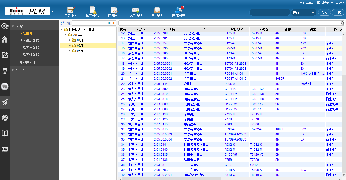 1)产品管理模块重点完成了产品、零部件、BOM及图文档管理,建立了基本的标准及编码体系,实现了产品管理从无到有的跨越,为联合光电产品管理更加规范化和专业化打下了基础;