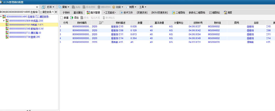 实现橡胶配方BOM的独立管理,并通过权限管控实现配方核心数据的保密管理;